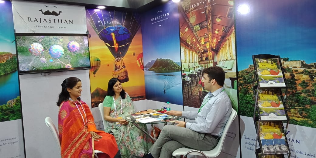 जयपुर। नई दिल्ली के अशोक होटल में आयोजित तीन दिवसीय इंडियन ट्रैवल मार्ट (आई टी एम ) में राजस्थान पर्यटन विभाग के स्टाल पर पर्यटन उद्योग से जुड़े देशी विदेशी पर्यटन व्यवसायियों के लिए आकर्षण का केंद्र बना हुआ हैं। राजस्थान पर्यटक सूचना केंद्र की अतिरिक्त निदेशक गुंजीत कौर ने बताया कि राजस्थान पर्यटन के स्टाल पर प्रदेश में हेरिटेज व ग्रामीण पर्यटन की सम्भावनाओ पर जानकारी लेने वालो का ताता लगा हुआ हैं।