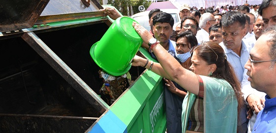 जयपुर। मुख्यमंत्री वसुन्धरा राजे ने सोमवार को यहां मुख्यमंत्री निवास पर आयोजित कार्यक्रम के दौरान ’स्त्रोत पर कचरे का पृथक्कीकरण अभियान’ की शुरूआत की। राजे ने डोर-टू-डोर कचरा एकत्र करने वाले वाहन में गीला और सूखा कचरा अलग-अलग रंग के डस्टबिन से डालकर इस अभियान का शुभारम्भ किया। मुख्यमंत्री ने ’स्वच्छ जयपुर-स्वस्थ जयपुर, स्वच्छ राजस्थान-स्वस्थ राजस्थान’ का नारा देते हुए कहा कि शहर स्वच्छ होगा तो स्वस्थ होगा और पूरा राजस्थान स्वच्छ होगा तो स्वस्थ रहेगा।