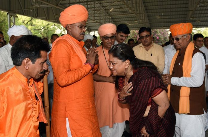 जयपुर। मुख्यमंत्री वसुंधरा राजे मंगलवार को बांसवाड़ा के मानगढ़ धाम पहुंची। राजे ने वहां शहीद स्मारक पर श्रद्धासुमन अर्पित किए और संतों का आशीर्वाद लिया। वसुंधरा राजे ने वहां गोविन्द गुरु की प्रतिमा का अनावरण किया। इस मौके पर राजे ने गोविन्द गुरु की धूणी पर पूजा अर्चना की। यज्ञ में आहुतियां दी। वहां सभा को संबोधित करते हुए कहा कि मानगढ़ धाम की महिमा काफी है।