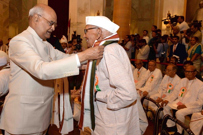 jaipur.नवलगढ़ में बाय गांव के रहने वाले स्वतंत्रता सेनानी रामेश्वर चौधरी को राष्ट्रपति भवन में राष्ट्रपति रामनाथ कोविंद द्वारा सम्मानित किया गया। उन्हें यह सम्मान अगस्त क्रांति के अवसर पर दिया गया। इस मौके पर प्रधानमंत्री नरेंद्र मोदी, उपराष्ट्रपति वेंकैया नायडू, पूर्व प्रधानमंत्री डॉ.मनमोहन सिंह के साथ-साथ देश के कई अन्य गणमान्य व्यक्ति मौजूद थे। रामेश्वर चौधरी को इससे पहले भी तीन अलग-अलग राष्ट्रपतियों द्वारा राष्ट्रपति सम्मान, एक बार आजादी के रत्न और लाइफ टाइम अचीवमेंट अवॉर्ड के साथ-साथ सैंकड़ों सम्मानों से सम्मानित किया जा चुका है।