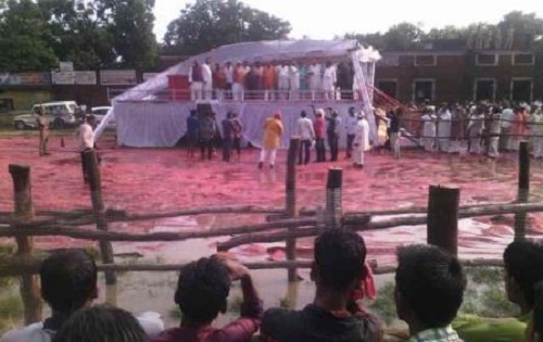 दरअसल सीएम योगी कॉलेज में बाढ़ पीडि़तों का राहत सामग्री बांटने के लिए आए थे। इसी दौरान बारिश का दौर शुरू हो गया। लोगों ने बचने के लिए कुर्सियों को अपने सिर पर रख लिया। इसी बीच देखते ही देखते लोग कुर्सियों को अपने साथ लेकर चलते बने। भीड़ इस कदर थी कि पुलिस भी उनका कुछ नहीं बिगाड़ सकी। इस दरम्यान टैंट के ठेकेदार ने लोगों से कुर्सियां वापस लेने का प्रयास किया। लेकिन वह पूरी तरह सफल नहीं हो सका। जिससे इस कार्यक्रम ने राहुल गांधी की खाट पंचायत कार्यक्रम की यादों को ताजा कर दिया। जिसमें कार्यक्रम के बाद लोग खाट को अपने साथ लेकर चले गए थे। यह कार्यक्रम भी इसी कॉलेज में आयोजित हुआ था।
