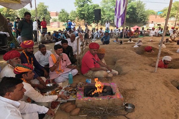 जयपुर। नींदड़ बचाओ युवा किसान संघर्ष समिति के आह्वान पर डॉ. नगेन्द्र सिंह शेखावत के नेतृत्व में जेडीए की जमीन अवाप्ति के विरोध में अवाप्ति को निरस्त करवाने के लिए नींदड़ गांव के किसानों और कालोनीवासियों के द्वारा जारी जमीन समाधि सत्याग्रह आज नवें दिन भी जारी रहा। आज जमीन समाधि सत्याग्रह में 22 पुरूष व 11 महिलायें पूर्व की भांति चैथे दिन भी अन्न त्याग के साथ सत्याग्रह में रहे। इसके अतिरिक्त आज जमीन समाधि सत्याग्रह में क्रमिक उपवास पर 30 पुरूष और 19 महिलायें भी रहीं। आज जमीन समाधि सत्याग्रह स्थल पर एक बार पुन: जेडीए को सद्बुद्धि देने के लिए सद्बुद्धि यज्ञ किया गया जिसके अन्तर्गत सुन्दरकाण्ड़ का पाठ किया गया।