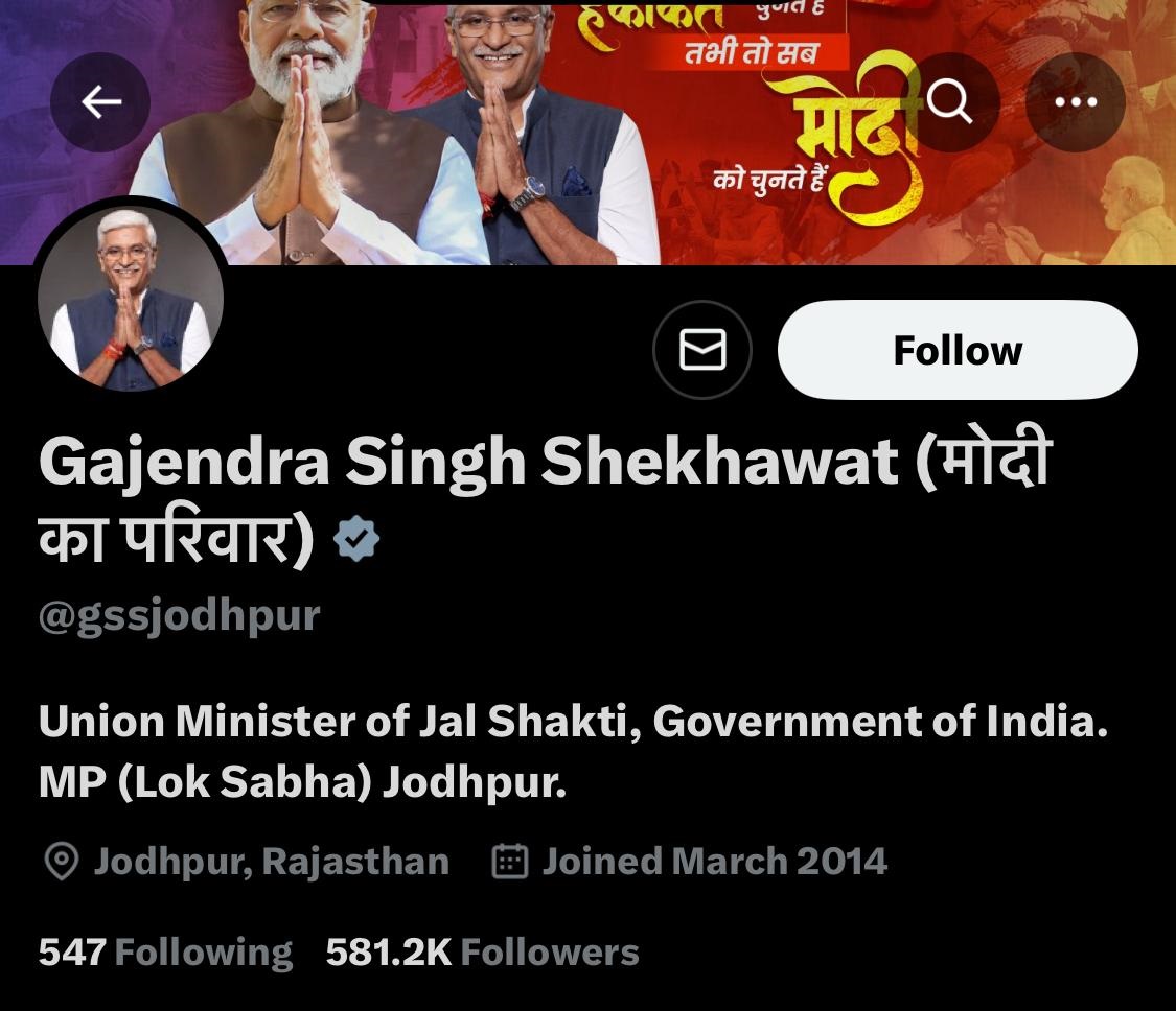 जयपुर/नई दिल्ली। केंद्रीय जलशक्ति मंत्री गजेंद्र सिंह शेखावत ने सोशल मीडिया पर अपना बॉयो बदल लिया है। उन्होंने नाम के साथ ‘मोदी का परिवार’ लिखा। इससे पहले, शेखावत ने बिहार के पूर्व मुख्यमंत्री लालू प्रसाद यादव पर तीखा हमला बोला। उन्होंने कहा कि राम मंदिर के विरोधी, परिवारवादी और भ्रष्टाचार के नेशनल टॉपर लालू प्रसाद यादव ने समस्त भारतवासियों को “मेरे परिवारजनों” कहने वाले प्रधानमंत्री के बारे में एक बार फिर बहुत अभद्र भाषा का प्रयोग किया है। लालू यादव इस बात से ही खीझे हुए हैं कि पीएम मोदी देश को अपना परिवार क्यों कहते हैं? यही एक परिवारवादी और राष्ट्रवादी में अंतर है।