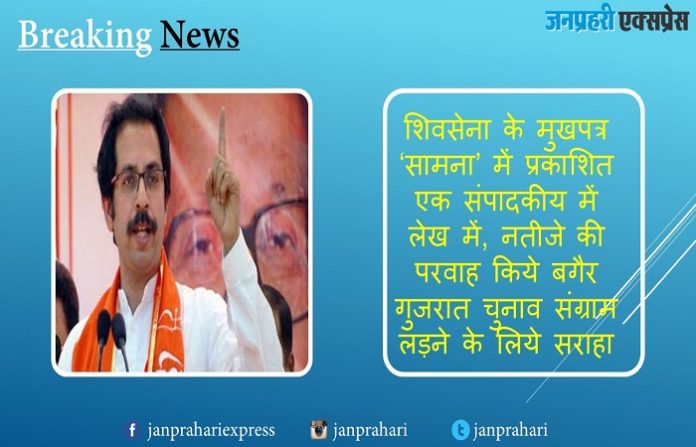 मुंबई : भाजपा की सहयोगी शिवसेना ने आज राहुल गांधी की भरपूर प्रशंसा की और ‘‘नतीजे की परवाह किये बगैर गुजरात चुनाव संग्राम लड़ने के लिये’’ कांग्रेस के नये अध्यक्ष की सराहना की। उद्धव ठाकरे के नेतृत्व वाली पार्टी ने कहा कि अमेठी से सांसद 47 वर्षीय राहुल गांधी ने बेहद नाजुक मोड़ पर इस सबसे पुरानी पार्टी का बागडोर संभाला है।