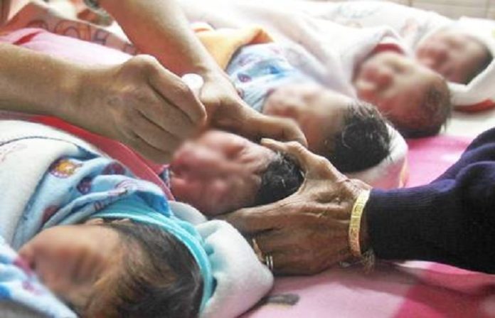 नयी दिल्ली : पलामू जिले में मेदिनीनगर इलाके के एक निजी नर्सिंग होम में एक महिला के छह नवजात शिशुओं की जन्म के कुछ मिनटों बाद ही मौत हो गई। गढ़वा जिले के खारसोता गांव की निवासी सरिता देवी पांच माह की गर्भवती थी। उसे कल प्रसव पीड़ा के बाद एक स्थानीय नर्सिंग होम लाया गया था। नर्सिंग होम के एक सूत्र ने बताया कि सरिता देवी ने तीन लड़कों और तीन लड़कियों को जन्म दिया था।