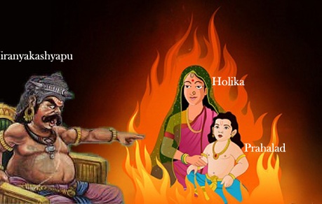 कहा जाता है कि प्राचीन काल में हिरण्यकश्यप नामक एक राक्षस का राज हुआ करता था। उसने वर्षों तक कठिन तपस्या कर ब्रह्माजी को खुश कर लिया और उनसे वरदान पा लिया। वरदान में यह मिला कि संसार का कोई भी जीव-जन्तु, देवी-देवता, राक्षस या मनुष्य उसे न मार सके। न ही वह रात में मरे, न दिन में, न पृथ्वी पर, न आकाश में, न घर में, न घर से बाहर। यहां तक की कोई शस्त्र भी उसे न मार पाए। ऐसा वरदान पाकर वह अत्यंत निरंकुश बन बैठा। वह लोगों से जबरन अपनी पूजा कराने लगा, नहीं करने वालों पर अत्याचार करने लगा। कुछ समय बाद हिरण्यकश्यप को पुत्र रत्न की प्राप्ति हुई, जिसका नाम प्रहलाद रखा। प्रहलाद बचपन से ही भगवान विष्णु का परम भक्त था और उस पर भगवान विष्णु की कृपा भी थी। हिरण्यकश्यप ने प्रहलाद को आदेश दिया कि वह उसके सिवाय किसी अन्य की पूजा न करे। यह मानने को प्रहलाद तैयार नहीं हुआ। इस पर हिरण्यकश्यप ने उसे जान से मारने के लिए पहाड़ी से फैंका, विषैले सर्पों के बीच छोड़ दिया। लेकिन प्रभु की कृपा के चलते वह हर बार बच जाता।