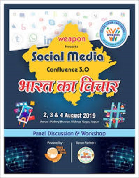 जयपुर। शहर में आज से तीन दिन सोशल मीडिया एक्टिविस्टों के लिए खास रहने वाले हैं। मालवीय नगर स्थित पाथेय पथ पर नारद आॅडिटोरियम में वैपन भारत द्वारा सोशल मीडिया कॉन्फ्लुएंस-3 का आयोजन किया जा रहा है। इसमें साइबर क्राइम, सामाजिक पत्रकारिता, राजनीति, अर्थव्यवस्था, फिल्म और रक्षा क्षेत्र से जुड़े एक्सपर्ट आएंगे। कॉन्फ्लुएंस में आज शाम 7 बजे भारत का विचार थीम पर भारत बोध विषय पर चिंतक डाॅ. मनमोहन वैद्य व फिल्म डायरेक्टर विवेक अग्निहोत्री के साथ संजय दीक्षित डॉयलाग करेंगे।