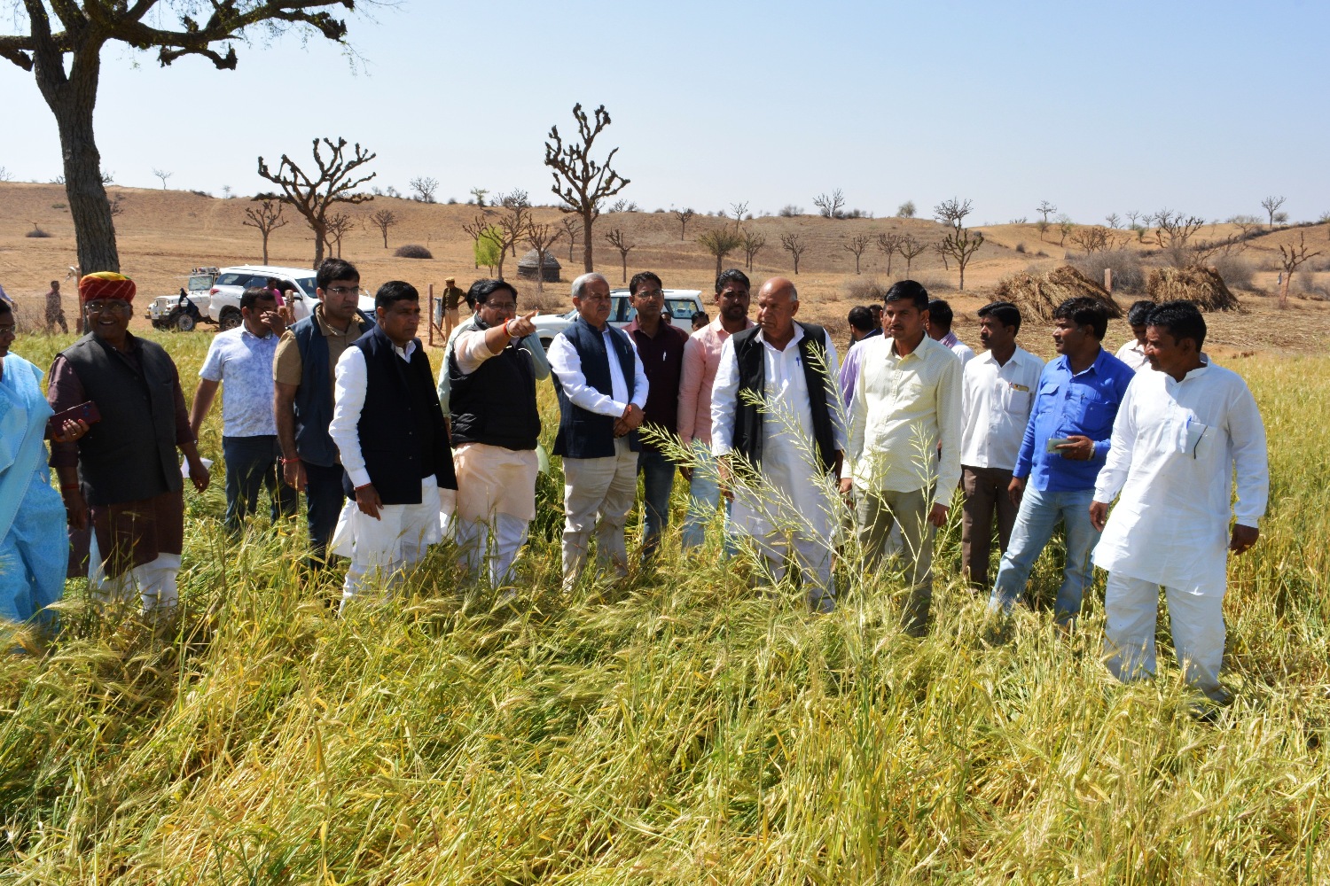जयपुर। तकनीकी एवं संस्कृत शिक्षा, राज्य मंत्री तथा चूरू के जिला प्रभारी डॉ.सुभाष गर्ग सोमवार को होली के दिन जिले के किसानों का दुःख-दर्द जानने के लिए ओलावृष्टि प्रभावित खेतों में पहुंचे तथा पीड़ित किसानों से मिलकर उन्हें भरोसा दिलाया कि संकट की इस घड़ी में राज्य सरकार किसानों के साथ है। प्रभारी मंत्री ने दाऊदसर गौरीसर, अजीतसर, धीरासर, सारसर, उदासर सहित विभिन्न गांवों का दौरा कर किसानों का दुःख-दर्द जाना।