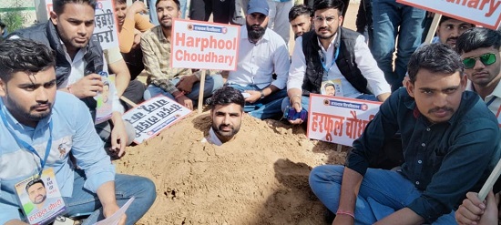 जयपुर. राजस्थान यूनिवर्सिटी में एक छात्र नेता ने जमीन में गर्दन तक समाधि ले ली। छात्र नेता खुद पर दर्ज मुकदमे समेत 3 मांगों काे पूरा नहीं करने का विरोध कर रहा है। समाधि के पास स्टूडेंट्स भी धरने पर बैठे हुए हैं। दरअसल, तीन मांगों को लेकर छात्रनेता हरफूल चौधरी यूनिवर्सिटी में गुरुवार सुबह प्रदर्शन कर रहा था। यूनिवर्सिटी प्रशासन ने छात्रों की मांग पर कोई जवाब नहीं दिया। आखिरकार नाराज होकर हरफूल चौधरी दोपहर 1 बजे सेंट्रल लाइब्रेरी के बाहर जमीन समाधि में बैठ गया है। कहा जब तक उनकी तीन सूत्री मांगों को पूरा नहीं किया जाएगा। उनका विरोध जारी रहेगा। साथ ही यूनिवर्सिटी प्रशासन पर तानाशाही करने का आरोप लगाया। हरफूल चौधरी ने कहा राजस्थान की सबसे बड़ी यूनिवर्सिटी में 2 महीने पहले सेंट्रल लाइब्रेरी का उद्घाटन हो चुका है। अब तक छात्रों के लिए इसे शुरू नहीं किया गया है। जबकि छात्रों के सेमेस्टर एग्जाम शुरू हो चुके हैं। ऐसे में जल्द से जल्द लाइब्रेरी स्टूडेंट्स के लिए शुरू होनी चाहिए। छात्रनेता ने कहा यूनिवर्सिटी के रजिस्ट्रार ने आम छात्रों के पैसों से भ्रष्टाचार किया है। इसकी निष्पक्ष जांच होनी चाहिए। इसके लिए उनके खिलाफ जांच कमेटी का गठन किया जाना चाहिए। उन्होंने कहा कि इससे पहले मैंने यूनिवर्सिटी के शिक्षकों के लिए प्रदर्शन किया था। यूनिवर्सिटी प्रशासन की ओर से हम 150 छात्रों पर राज्य कार्य में बाधा का मुकदमा दर्ज करा दिया। जो पूरी तरह से तानाशाही है। अगर यूनिवर्सिटी में ही छात्र अपनी बात को नहीं रख सकेगा तो फिर आम छात्र अपने अधिकार के लिए कहां बोलेगा। ऐसे में यूनिवर्सिटी प्रशासन की ओर से दर्ज मुकदमा वापस लिया जाना चाहिए। यूनिवर्सिटी के चीफ प्रॉक्टर हरि पलसानिया ने कहा कि यूनिवर्सिटी में छात्रों के लिए ही लाइब्रेरी बनाई गई है। जहां फिलहाल काम जारी है। जैसे ही काम कंप्लीट होगा लाइब्रेरी छात्रों के लिए खोल दी जाएगी।