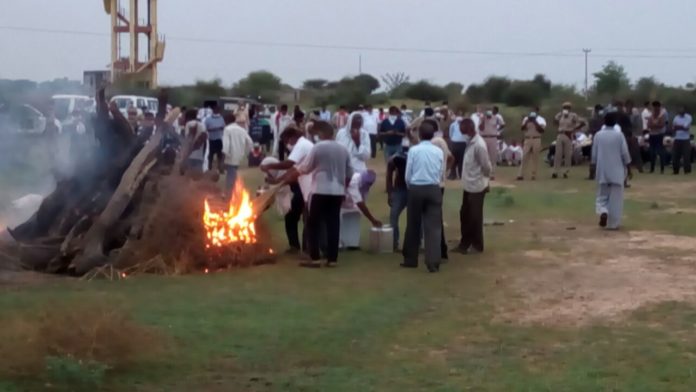 जयपुर। आनंदपाल सिंह के शव का दाह संस्कार गुरुवार शाम को सांवराद में कर दिया गया। इस दौरान बड़ी संख्या में पुलिस फोर्स थी,लेकिन परिजन और ग्रामीण नाममात्र के थे। आनंदपाल का अंतिम संस्कार होने पर सरकार और पुलिस ने राहत की साँस ली है। हांलाकि किसी संभावित अंदेशे के चलते अभी सांवराद में पुलिस बल रहेगा। हिंसा को लेकर राजपूत समाज के नेताओं पर मामले दर्ज हो सकते हैं।