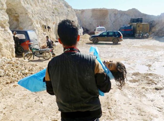 नई दिल्ली। सीरिया के आतंक प्रभावित क्षेत्रों में रासायनिक और केमिकल हमले ने इंसानियत को तार-तार कर दिया। केमिकल हमले से कुछ ही पल में सैकड़ों लाशें बिछ गई, वहीं जो केमिकल के सम्पर्क में आए वे बदहास भागते-दौड़ते और बेहोश होते दिखे। कोई बच्चों को लेकर भाग रहा था तो कोई अपने बड़े-बुजुर्ग को बचाने में लग रहा था। घरों व सड़कों पर लोग गिरते-पड़ते और तड़पते दिख रहे थे। जब तक चिकित्सा टीम इनकी तक पहुंचती तब तक सैकड़ों लोगों की जानें चली गई और हजारों घायल हो गए। केमिकल हमले का ऐसा खौफनाक मंजर था कि हर किसी का दिल दहल जाए। यह केमिकल हमला सीरिया के इडलिब प्रांत में हुआ। यह क्षेत्र आईएसआईएस के कब्जे में है। संयुक्त राष्ट्र संघ समेत तमाम देशों ने केमिकल हमले की निंदा की है। सोशल मीडिया पर केमिकल हमले से प्रभावित बच्चे और लोगों को तड़पते, बिलखते और मरते दिख रहे हैं। ये वीडियो पूरी दुनिया में वायरल हो रहे हैं। केमिकल हमले को कानूनी तौर पर प्रयोग करने के लिए प्रतिबंध कर रखा है। लेकिन इसके बाद भी केमिकल हमला करके सैकड़ों बेकसूर लोगों की जान ले ली गई। केमिकल हमला किसने किया, यह सामने नहीं आया है। हालांकि इस हमले को लेकर सभी जगह निंदा हो रही है।
