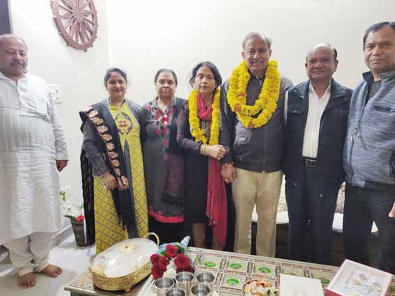 जयपुर । सुभाष गर्ग को राज्य सरकार में तकनीकी राज्य मंत्री बनाये जाने पर उनके निवास पर परिवारजन सहित कई लोगों ने माला पहनाकर सम्मान किया। इस अवसर पर गर्ग की पत्नी श्रीमती मंजू गर्ग व अनिल गुप्ता, आर.के. गुप्ता, श्रीमती सरोज गुप्ता, श्रीमती बृजलता गुप्ता सहित कई लोग मौजूद थे।