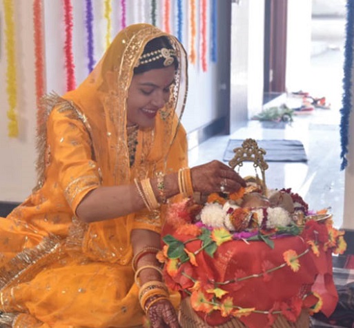 गोविंदगढ़. 30 साल की पूजा सिंह ने गांव के मंदिर में विराजमान भगवान ठाकुरजी से शादी कर ली। ये शादी 8 दिसंबर को हुई। शादी के बाद पूजा अपने घर पर ही रहती हैं और ठाकुरजी मंदिर में। पूजा उनके लिए सवेरे भोग बनाकर ले जाती हैं। उनके लिए पोशाक बनाती हैं और शाम को दर्शन के लिए जाती है। तीस साल की पूजा सिंह पॉलिटिकल साइंस से एमए हैं। पिता प्रेमसिंह बीएसएफ से रिटायर हैं और एमपी में सिक्योरिटी एजेंसी चलाते हैं। मां रतन कंवर गृहणी हैं। तीन छोटे भाई हैं अंशुमान सिंह, युवराज और शिवराज। तीनों कॉलेज और स्कूल की पढ़ाई कर रहे हैं। ठाकुरजी से विवाह का फैसला उनका खुद का था। शुरू में समाज, रिश्तेदार और परिवार के लोग इस पर सहमत नहीं हुए, लेकिन फिर मां ने जरुर बेटी की इच्छा का सम्मान कर सहमति दे दी थी। पिता ना पहले राजी थे और ना ही आज। इसीलिए शादी में भी नहीं आए। सारी रस्में मां ने ही पूरी की। शादी के बारे में पूछा तो बोलते-बोलते उनकी आंखे भर आई। बोली, पापा नहीं आए मुझे बहुत दुख है, लेकिन इस शादी से मैं बेहद खुश हूं, क्योंकि घर, परिवार समाज में जो कुछ मैंने देखा है उसके बाद मैं कभी शादी नहीं करना चाहती थी, लेकिन लोगों ने ताने मारने शुरू किए तो कुंवारी ना कहलाऊं इसलिए यह निर्णय लिया। पूजासिंह की शादी में उसकी सहेलियां और रिश्तेदार भी शामिल हुए। करीब तीन सौ लोगों के लिए भोजन बनाया गया। इसमें करीब तीन लाख रुपए खर्च हुए। शादी की रस्मों के दौरान हल्दी लगाने से लेकर मेहंदी तक की रस्में धूमधाम से हुईं। सहेलियों ने पूजा को सजाया संवारा। उसने सहेलियों के साथ डांस भी किया। घर में रोजाना मंगलगीत गाए गए। शादी में परंपरानुसार दुल्हा दूल्हन की मांग सिंदूर से भरता है, लेकिन इस शादी में यह परंपरा भी कुछ अलग तरीके से हुई। ठाकुरजी की ओर से खुद पूजासिंह ने अपनी मांग भरी। ठाकुरजी को सिंदूर से अधिक चंदन पसंद होता है, इसलिए पूजासिंह ने अपनी मांग भी सिंदूर की बजाय चंदन से भरी। पूजा सिंह और ठाकुरजी का यह विवाह सभी रीति रिवाजों से हुआ। बाकायदा गणेश पूजन से लेकर चाकभात, मेहंदी, महिला संगीत और फेरों की रस्में हुई। ठाकुरजी को दूल्हा बनाकर गांव के मंदिर से पूजा सिंह के घर लाया गया। मंत्रोच्चार हुआ और मंगल गीत गाए गए। पिता नहीं आए तो मां ने फेरों में बैठकर कन्यादान किया। इसके बाद विदाई हुई। परिवार की ओर से कन्यादान और जुहारी के 11000 रुपए दिए गए। ठाकुर जी को एक सिंहासन और पोशाक दी गई।