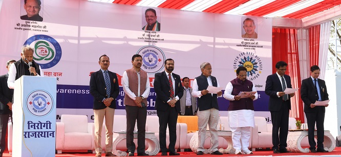 कार्यक्रम में चिकित्सा एवं स्वास्थ्य मंत्री डॉ. रघु शर्मा ने कहा कि राज्य सरकार ने निरोगी राजस्थान के रूप में एक ऎसा अभियान चलाया है जो लोगों को स्वस्थ जीवन शैली अपनाकर रोगमुक्त रहने के लिए प्रेरित करेगा। आशा सहयोगिनियों, एएनएम, आंगनबाड़ी कार्यकर्ताओं सहित चिकित्सा विभाग की पूरी टीम और ग्राम स्तर पर बनाए जाने वाले स्वास्थ्य मित्रों के माध्यम से इस अभियान को जन आन्दोलन बनाया जाएगा। निशुल्क दवा योजना तथा निशुल्क जांच योजना के बाद स्वास्थ्य के क्षेत्र में मुख्यमंत्री का यह बड़ा निर्णय है। उन्होंने कहा कि राजस्थान ऑर्गन ट्रांसप्लांट के क्षेत्र में निरन्तर आगे बढ़ रहा है।