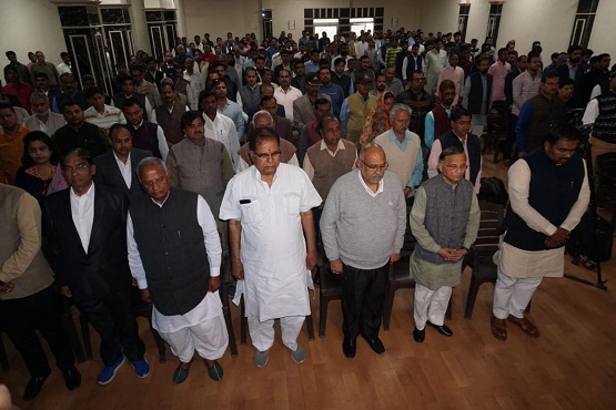 भारतीय जनता पार्टी के राष्ट्रीय सह-संगठन महामंत्री वी. सतीश, राष्ट्रीय उपाध्यक्ष एवं प्रदेश प्रभारी अविनाश राय खन्ना, प्रदेशाध्यक्ष मदनलाल सैनी, प्रदेश संगठन महामंत्री चन्द्रशेखर, प्रदेश महामंत्री भजनलाल शर्मा, प्रदेश उपाध्यक्ष सुनील कोठारी, प्रदेश मंत्री मुकेश दाधीच, प्रदेश मीडिया प्रभारी विमल कटियार, मीडिया सम्पर्क प्रमुख आनन्द शर्मा, प्रदेश प्रवक्ता मुकेश पारीक, अलका सिंह गुर्जर, पंकज मीणा, अमित गोयल, लक्ष्मीकान्त भारद्वाज, जयपुर शहर अध्यक्ष मोहनलाल गुप्ता, विधायक नरपत सिंह राजवी, भाजयुमो प्रदेशाध्यक्ष अशोक सैनी सहित पार्टी के अनेकों पदाधिकारियों एवं कार्यकर्ताओं ने दो मिनट का मौन रखकर पुलवामा में शहीद हुए सी.आर.पी.एफ. के जवानों को श्रद्धांजलि दी।