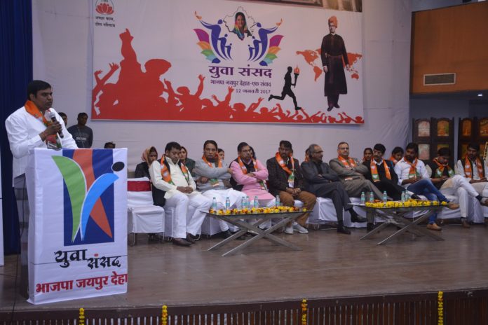 जयपुर। भाजपा जयपुर देहात की ओर से स्वामी विवेकानंद जयंती व नेशनल यूथ डे पर इन्दिरा गांधी पंचायती राज संस्थान में युवा संसद कार्यक्रम का आयोजन किया गया। कार्यक्रम का शुभारम्भ राजस्थान विधानसभा में उपाध्यक्ष राव राजेन्द्र सिंह ने किया। संसद में युवा संवाद के माध्यम से राज्य और केन्द्र सरकार की योजनाओं को जनता तक पहुंचाने का आह्वान किया। साथ ही सरकारी योजनाओं के संदर्भ में प्रश्न काल भी हुआ। कार्यक्रम में उद्योग मंत्री राजपाल सिंह शेखावत ने कहा कि इतनी संख्या में युवाओं को जोड़कर एक नयी पहल युवा संसद के माध्यम से राज्य सरकार की योजनाओं का प्रचार-प्रसार करना काबिले तारीफ है। भाजपा जयपुर देहात जिला अध्यक्ष दीनदयाल कुमावत ने बताया कि युवा संसद कार्यक्रम जयपुर देहात की 12 विधानसभओं में होगा। इसके माध्यम से राज्य सरकार के तीन साल की योजनाओं के बारे में आमजन को अवगत कराया जाएगा। कार्यक्रम में राव राजेन्द्र सिंह ने कहा कि हमें नवाचार का आचरण कर तथा आध्यात्मिक गुरू स्वामी विवेकानंद को याद कर उनके बताये हुये कदमों पर चलना चाहिए। स्वामी विवेकानंद ने ही भारतीय संस्कृति को विश्वस्तर पर पहचान दिलाने का श्रेय दिलवाया।