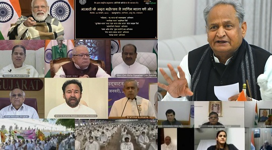 श्री गहलोत गुरूवार को वीडियो कॉन्फ्रेंस के माध्यम से ’आजादी के अमृत महोत्सव से स्वर्णिम भारत की ओर’ कार्यक्रम के राष्ट्रीय स्तर पर शुभारंभ समारोह को संबोधित कर रहे थे। उन्होंने कहा कि जब हम सभी आजादी का अमृत महोत्सव मना रहे हैं तो राष्ट्रपिता महात्मा गांधी एवं पंडित नेहरू को याद करें। सरदार वल्लभ भाई पटेल, मौलाना अबुल कलाम आजाद, तिलक, गोखले सहित सैंकड़ों महापुरूषों एवं ज्ञात अज्ञात शहीदों को याद करें, जिन्होंने इस देश को आजादी दिलाई।
