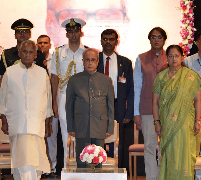 मुखर्जी सोमवार को यहां बिडला सभागार में प्रथम भैरोंसिंह शेखावत स्मृति व्याख्यानमाला में मुख्य वक्ता के रूप में अपना उद्बोधन दे रहे थे। समारोह में सिक्किम के मुख्यमंत्री पवन कुमार चामलिंग को जन सेवा के क्षेत्र में प्रथम भैरोंसिंह शेखावत मेमोरियल लाइफटाईम एचीवमेंट सम्मान प्रदान किया गया। उन्होंने कहा कि लोकतांत्रिक व्यवस्था एवं मजबूत संसदीय परम्पराआेंं के कारण भारत पूरे विश्व में एक रोल मॉडल है। हमारी संसदीय प्रणाली ने सांसदों एवं विधायकों को कई शक्तियां दी हैं, जिनका उपयोग उन्हें जन सेवा के लिए सही रूप में करना चाहिए। राष्ट्रपति ने इस बात पर जोर दिया कि जब आजादी के पहले के समय के कानून निर्माण सीमित अधिकारों के बावजूद जनता की भलाई के लिए काफी कुछ कर गए तो आज के हमारे सांसद, विधायक एवं विधान परिषद् सदस्य बहुत कुछ कर सकते हैं।