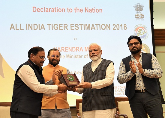 नई दिल्ली. विश्व बाघ दिवस के अवसर पर प्रधानमंत्री नरेन्द्र मोदी ने आज नई दिल्ली में अपने आवास पर बाघों के अखिल भारतीय अनुमान-2018 के चौथे चक्र के परिणाम जारी किए। सर्वेक्षण के अनुसार 2018 में भारत में बाघों की संख्या बढ़कर 2967 हो गई। इस अवसर पर प्रधानमंत्री ने इसे भारत के लिए एक ऐतिहासिक उपलब्धि बताया और बाघों के संरक्षण की दिशा में भारत की प्रतिबद्धता को दोहराया। प्रधानमंत्री ने इस लक्ष्य को हासिल करने के लिए कार्य कर रहे विभिन्न हितधारकों की गति और समर्पण की सराहना की। उन्होंने इसे संकल्प से सिद्धि का एक उत्तम उदाहरण बताया। उन्होंने कहा कि भारत की जनता जब एक बार कुछ करने की ठान लेती है, तो कोई भी ताकत उसे वांछित परिणाम हासिल करने से रोक नहीं सकती।