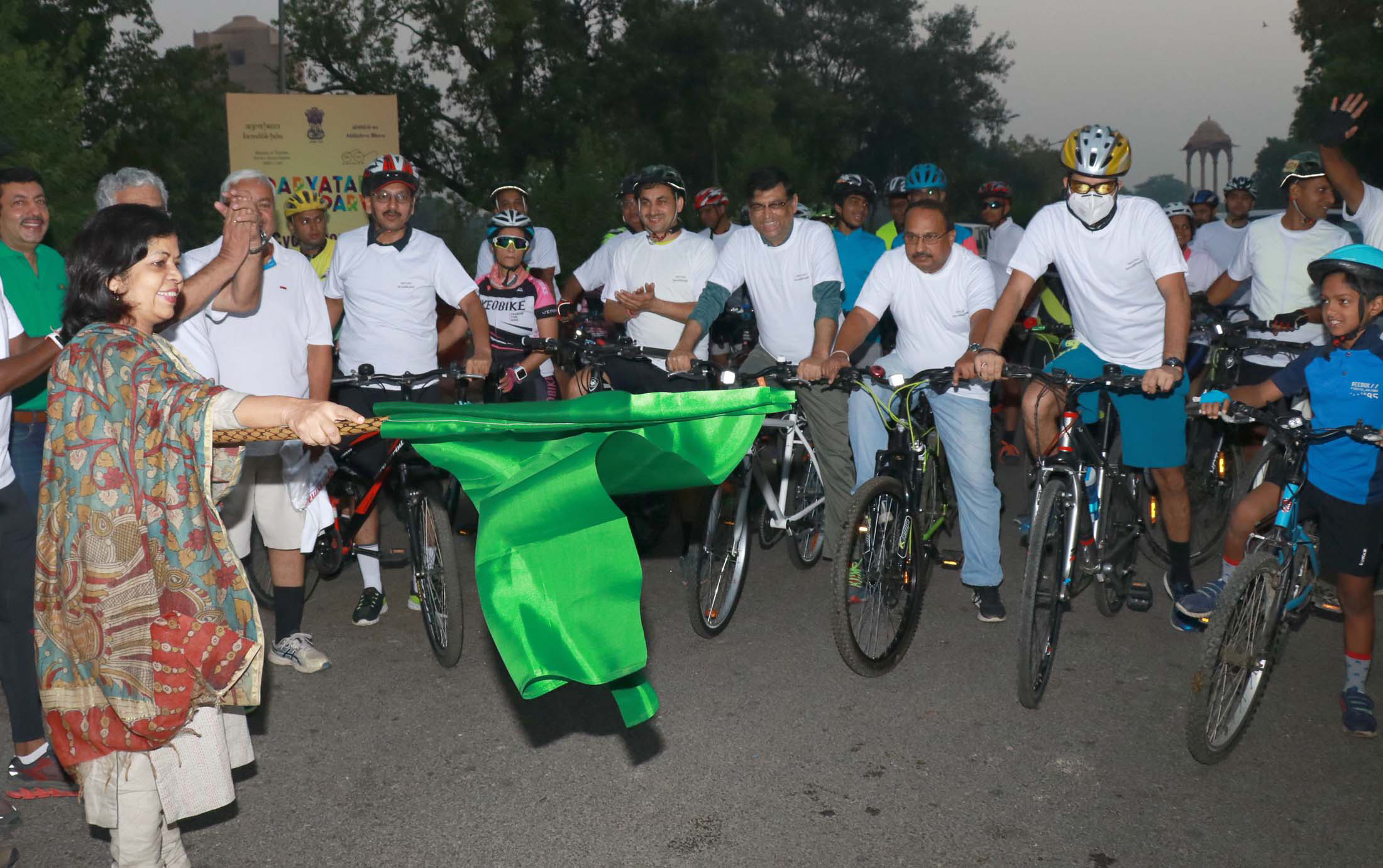 नई दिल्ली। पर्यटन सचिव श्रीमती रश्मि वर्मा ने आज सुबह पर्यटन मंत्रालय के पर्यटन पर्व के उपलक्ष्य में इंडिया गेट पर आयोजित साइकिल रैली को हरी झंडी दिखाकर रवाना किया। इस साइकिल रैली का आयोजन पर्यटन, पर्यावरण और निरंतरता के प्रति जागरूकता लाना है। इस रैली में 75 साइकिल सवारों ने भाग लिया और इसका समापन नई दिल्ली के कुतुब मीनार पर हुआ।