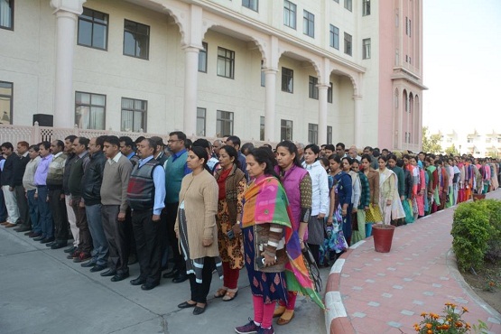 जयपुर। राजस्थान पुलिस मुख्यालय में शुक्रवार को प्रातः 10.30 बजे जम्मू-कश्मीर के पुलवामा में गुरुवार को हुए आतंकी हमले में मारे गए शहीद जवानों को श्रद्धांजलि दी गई। महानिदेशक पुलिस कपिल गर्ग के नेतृत्व में राजस्थान पुलिस के अधिकारियों एवं पुलिसकर्मियों ने 2 मिनट का मौन रख कर शहीद हुए जवानों के प्रति श्रद्धांजलि व्यक्त की।