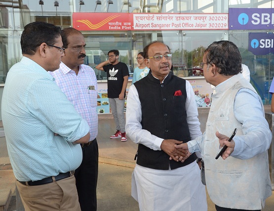 जयपुर। केन्द्रीय संसदीय मामलात एवं सांख्यिकी, कार्यक्रम क्रियान्वयन मंत्री विजय गोयल मंगलवार सुबह एक दिवसीय प्रवास पर जयपुर पहुंचे। सांगानेर एयरपोर्ट पर केन्द्रीय मंत्री विजय गोयल का भाजपा मीडिया प्रमुख आनन्द शर्मा, भाजपा नेता सुनील कोठारी, डॉ. एस.एस.अग्रवाल आदि ने स्वागत किया।
