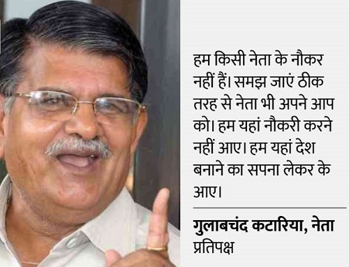 जयपुर. राजस्थान में भाजपा की अंदरूनी गुटबाजी खुलकर सामने आ गई है। केंद्रीय मंत्री अर्जुनराम मेघवाल के उगते हुए सूरज सतीश पूनिया के नेतृत्व में देखना शुरू करो, उगते सूरज को पानी चढ़ाओ के बयान पर नेता प्रतिपक्ष गुलाबचंद कटारिया ने पलटवार करते हुए सरदारशहर (चूरू) में कहा हम किसी नेता के नौकर नहीं है। ठीक तरह से नेता भी अपने आप को समझ लें। मेघवाल और कटारिया की इस बयानबाजी ने पार्टी में हलचल मचा दी है। केंद्रीय मंत्री मेघवाल बीजेपी हाईकमान के नजदीकी माने जाते हैं। पीएम मोदी से लेकर केंद्रीय गृहमंत्री अमित शाह से उनके निकट और अच्छे पॉलिटिकल संबंध हैं। इसलिए माना जा रहा है उन्होंने ‘उगते सूरज’ और ‘डूबते सूरज’ शब्दों का इस्तेमाल कर भाजपा का पूरा सियासी नेरेटिव बदलने की मुहिम शुरू कर दी है। हालांकि मेघवाल ने जब यह बात कही उस वक्त प्रदेश बीजेपी के सभी प्रमुख नेता सभागार में मौजूद थे, लेकिन पूर्व मुख्यमंत्री वसुंधरा राजे और प्रदेश प्रभारी अरुण सिंह मौजूद नहीं थे। उन्होंने पूनिया को तो उगता सूरज बताया, लेकिन डूबते सूरज का बिना नाम लिए बेहद चतुराई से सियासी मैसेज भी दे दिया है। उनका ये बयान सीएम फेस को लेकर बीजेपी में चल रही खींचतान की तरफ इशारा माना जा रहा है। बीजेपी में अर्जुनराम मेघवाल और सतीश पूनिया एक ही गुट के माने जाते हैं। मेघवाल का समर्थन करते हुए जयपुर में उपनेता प्रतिपक्ष राजेंद्र राठौड़ ने कहा पूनिया तो हमारी पार्टी में पूर्ण सूरज हैं। वो हमारे अध्यक्ष हैं और उनका नेतृत्व चल रहा है। मेघवाल के बयान से एक दिन पहले 12 नवंबर को सरदारशहर में विधानसभा उपचुनाव का प्रत्याशी तय करने के लिए तेरापंथ भवन में बैठक रखी गई थी। इसमें कार्यकर्ताओं को मंच से संबोधित करते कटारिया ने कहा था किसी प्रत्याशी को चुनाव लड़ाने से पहले आप सबको जान, समझकर, मतदाता और गांव की भावना को समझकर ही निर्णय करेंगे।