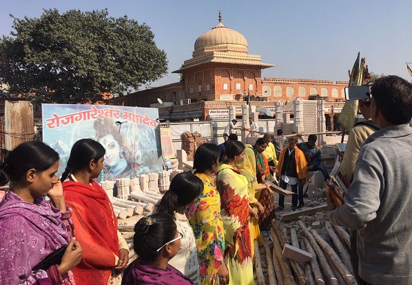 जयपुर। जयपुर शहर की छोटी चैपड़ स्थित प्राचीन रोजगारेश्वर महादेव मन्दिर के पुननिर्माण के दौरान धरोहर बचाओं समिति के द्वारा की जा रही कारसेवा अभियान के पांचवे दिन बसंत पंचमी को महिलाओं ने श्रमदान करके कारसेवा की। धरोहर बचाओं समिति के संरक्षक भारत शर्मा ने बताया की जयपुर शहर की आस्था का केन्द्र श्री रोजगारेश्वर महादेव मन्दिर के पुनर्मिाण के दौरान कारसेवा अभियान के पांचवे दिन साकार महिला विकास समिति के सदस्यों द्वारा महिलाओं ने श्रमदान करके कारसेवा की।