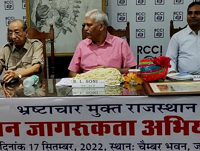 जयपुर. एसीबी के जागरुकता अभियान के तहक डीजी एसीबी ने चैंबर ऑफ कॉमर्स एंड इंडस्ट्रीज के विभिन्न व्यापारी संगठनों के प्रतिनिधियों ,व्यापारियों से कार्यक्रम के दौरान संवाद किया। डीजी एसीबी बीएल सोनी ने राजस्थान एसीबी के भ्रष्टाचार को लेकर क्या प्लानिंग है उसे खुल कर व्यापारियों को बताया।सोनी ने कार्यक्रम में मौजूद व्यापारियों को कहा कि आप का और आप के कर्मचारियों का हर समय सरकारी और गैर सरकारी लोगों के साथ डीलिंग होती हैं। अगर आप का कोई सरकारी कर्मचारी सही काम करने के पैसे मांग रहा हैं तो आप को केवल एसीबी के टोल फ्री नम्बर 1064 और वॉट्सऐप नंबर 9413502834 पर जानकारी साझा करनी हैं। आगे हम और हमारी पूरी टीम क्या करती है आप को पता चल जाएगा। आप सभी व्यापारियों से केवल एक अपील हैं कि किसी भी कीमत पर रिश्वत ना दें। पैसा मांगने वाले की रिकॉडिंग या फिर मैनवली सत्यापन करवा दें। आप का काम खत्म। जो करेगी अब एसीबी ही करेगी। किसी व्यापारी को लगता है कि उसका काम ट्रेप कराने के बाद नहीं होगा। वहां के कर्मचारी उसके काम को नहीं होने देगे तो इससे भी आप चिंता मुक्त हो जाइए। क्यों की राज्य सरकार ने एक आदेश जारी किया है कि जो व्यक्ति किसी भ्रष्ट कर्मचारी को पकड़वाता हैं। उसके उस विभाग में अटके हुए काम पूरा कराने की जिम्मेदारी एसीबी की होगी। हमारी टीम के कर्मचारी तय समय में उनका काम कराएंगे। इस लिए खुल कर शिकायत करें एसीबी में जिससे की भ्रष्ट अधिकारी और कर्मचारियों को एसीबी के द्वारा पकड़ा जा सके। चेंबर ऑफ कॉमर्स के महासचिव डॉ. के एल जैन ने कहां की एसीबी द्वारा भ्रष्टाचार मुक्त राजस्थान बनाने की मुहिम स्वागत योग्य हैं । इस हेतु आमजन तथा व्यापारियों को भी जिम्मेदारी पूर्वक सरकारी कार्य करवाने की प्रक्रिया में लगने वाले समय तक धैर्य पूर्वक प्रतीक्षा करने की भी आवश्यकता हैं। कोई पैसा मांगता है तो उसकी शिकायत एसीबी को देनी हैं।